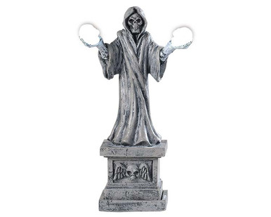 This Skeleton Lamp is well suited for the spooky ole Spooky Town cemetery. This skeleton statue holds a light bulb in each hand. The Skeleton Lamp works well for outdoor barbecues, depending upon whom you are barbecuing. The Skeleton Lamp is a Lemax Spooky Town village lighted accessory that will also coordinate with other Halloween villages in the same scale, such as Department 56 and Carole Towne. Add this Lemax village collectible to your collection today! Whenever you need Lemax village collectibles, think of Villages of Fun (formerly known as Lemax Village Collectibles). Note: This item runs on three AA batteries (not included) or using a 4.5-volt adapter (item #74707 [black] or #74706 [white]).